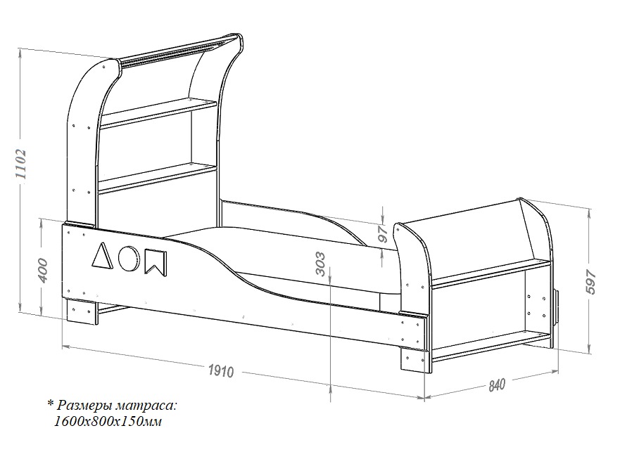 Для детей кровать – нечто гораздо большее, чем просто комфортный сон. Часто кроватка бывает местом для игр: сидя на кровати, ребенок читает любимые книжки, играет в игрушки и выдумывает разные истории вместе с родителями. Ребёнку очень понравятся полочки, предусмотренные в кровати с обоих сторона и светильник.