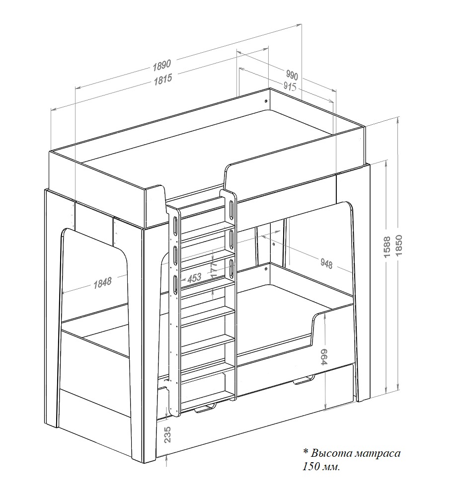 Главное её преимущество заключается в экономии свободного места, особенно, если поставить две полноценных кровати просто некуда. К тому же, можно спрятать постельное белье и вещи в глубокий ящик.