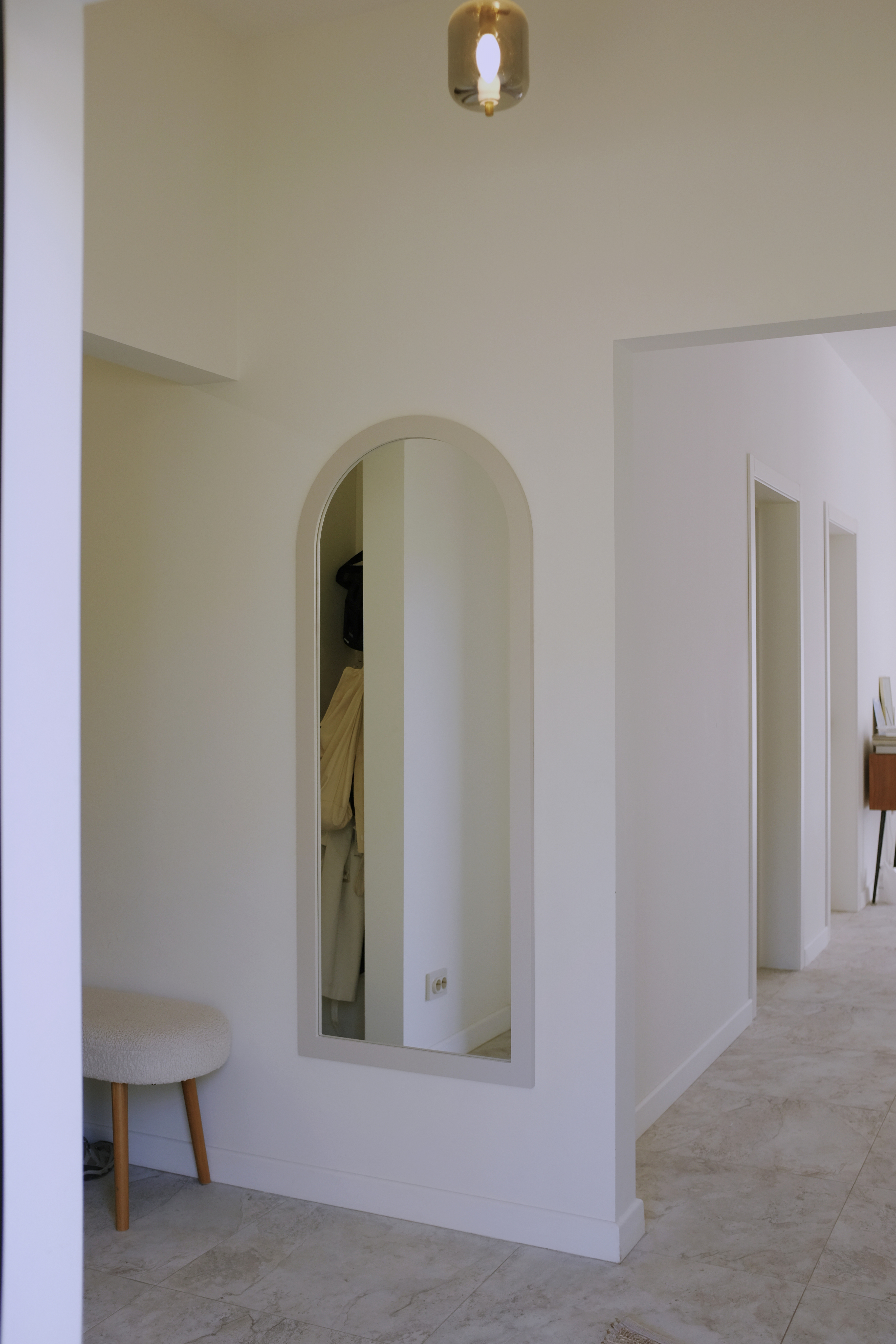 Зеркала (кстати, из нашей новой коллекции!), тумба в ванной, шкаф в прихожей — мебель KUBI органично распределена по всему дому, оставаясь при этом цельной в стилистике.