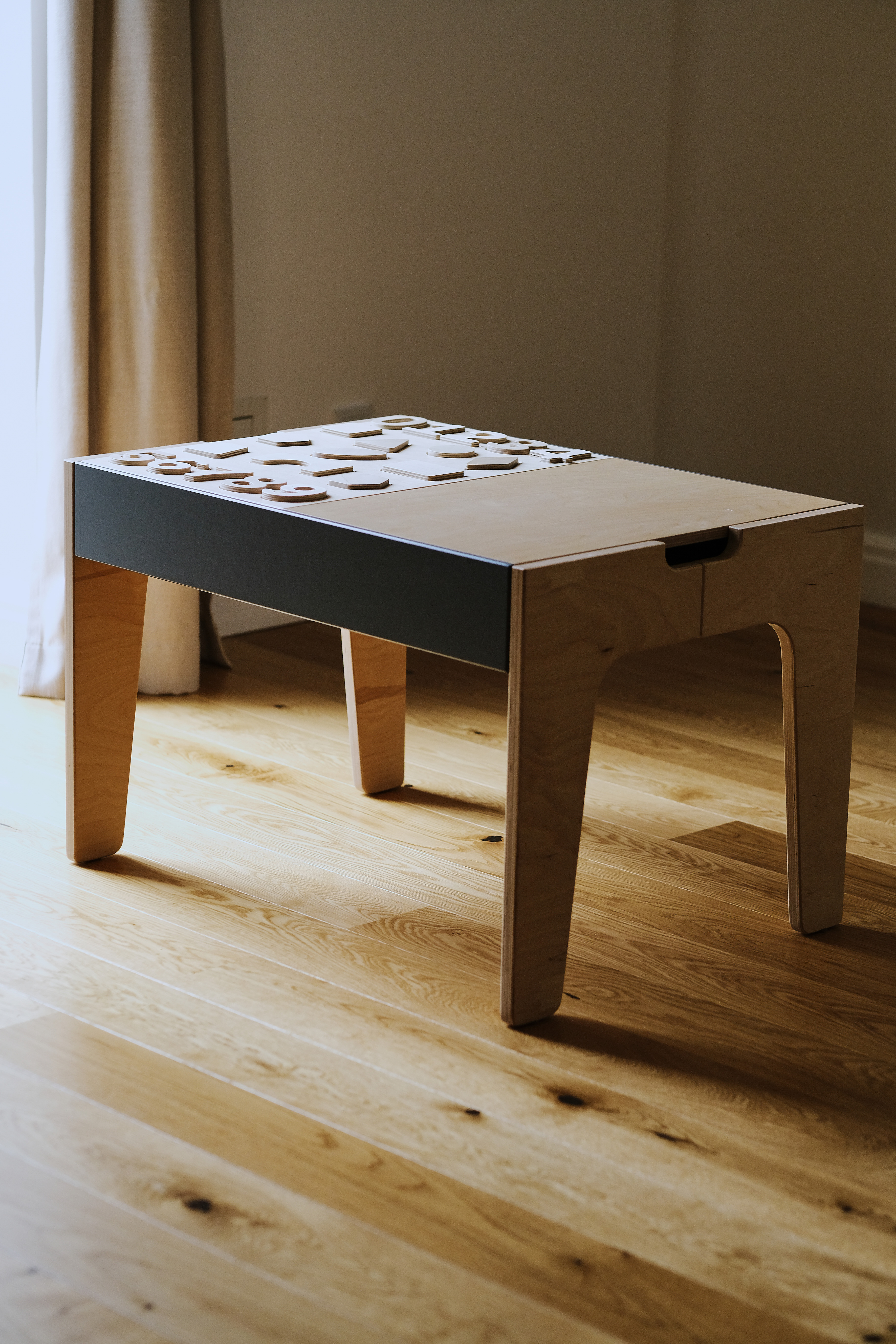 На одной из сторон столешницы — сортер с фигурами и цифрами от 0 до 9.
