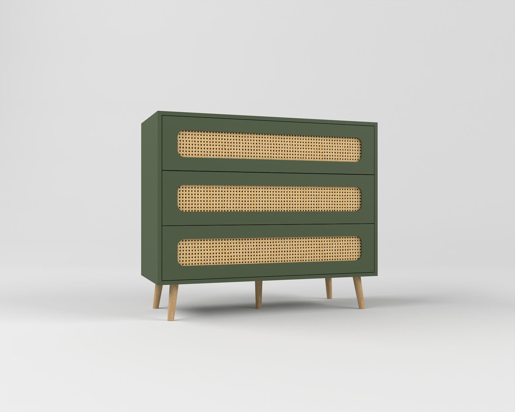 Комод ротанг Луми три ящика Оливковый: RAL 6003