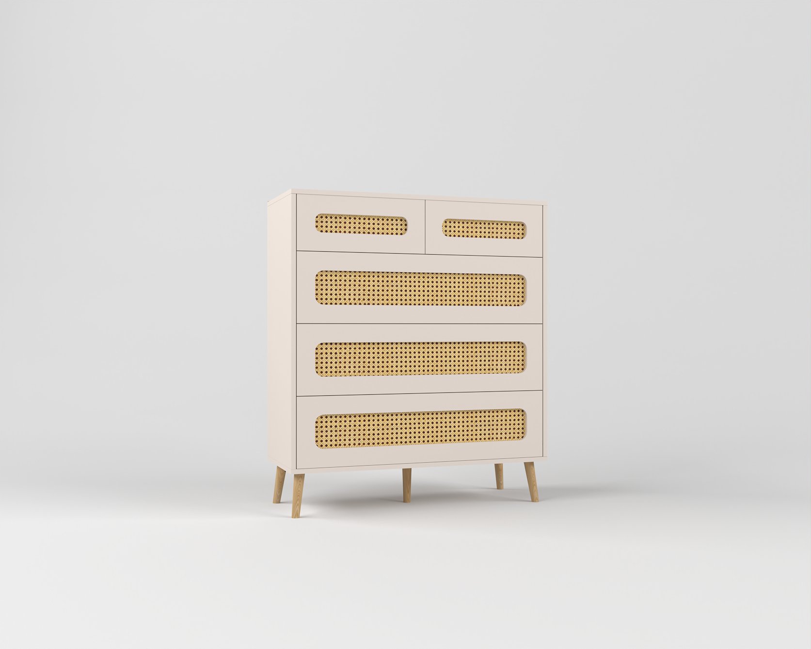 Высокий комод Луми со вставками из искусственного ротанга отлично впишется в интерьер любой комнаты, от гостиной до детской.