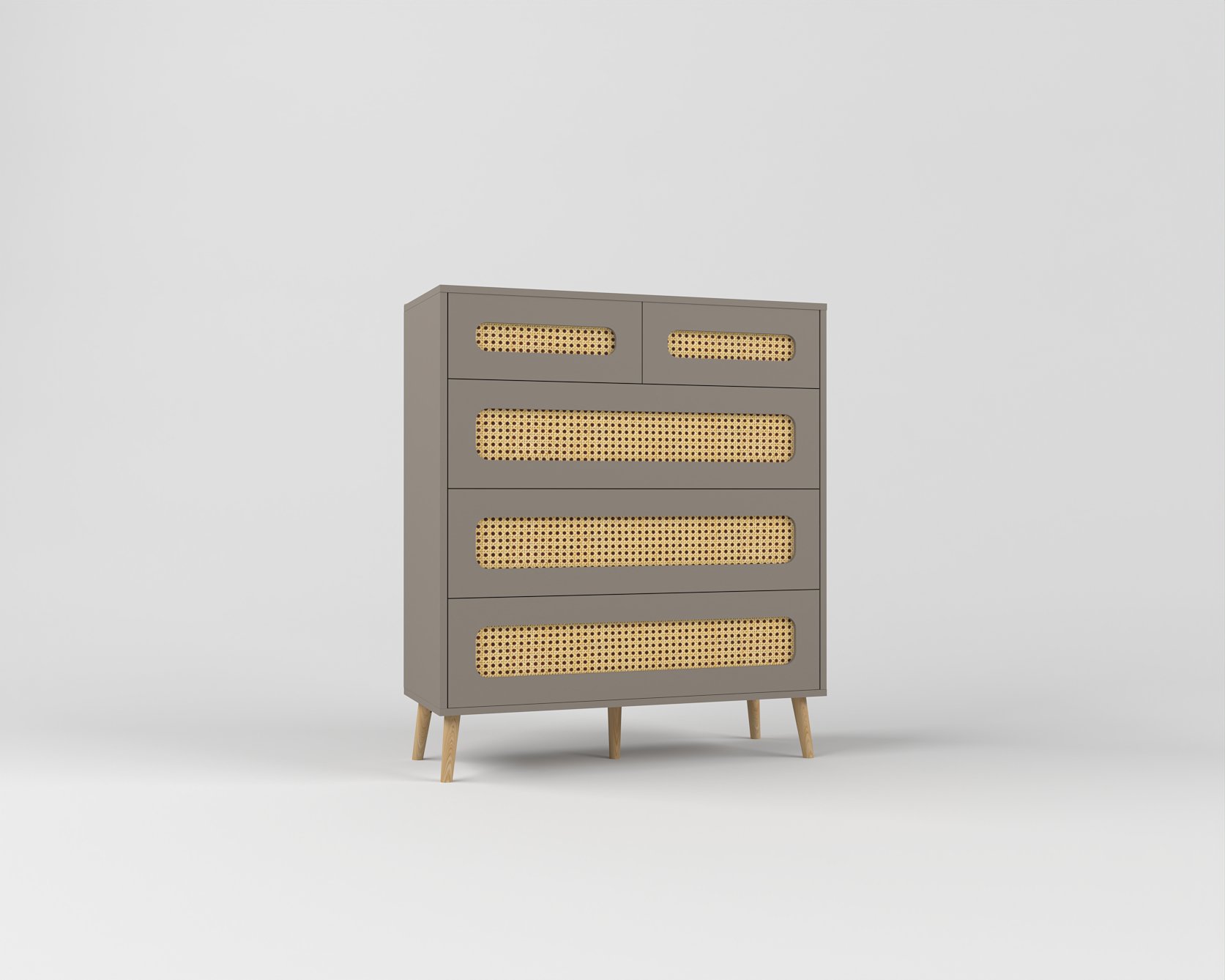 Высокий комод Луми со вставками из искусственного ротанга отлично впишется в интерьер любой комнаты, от гостиной до детской.