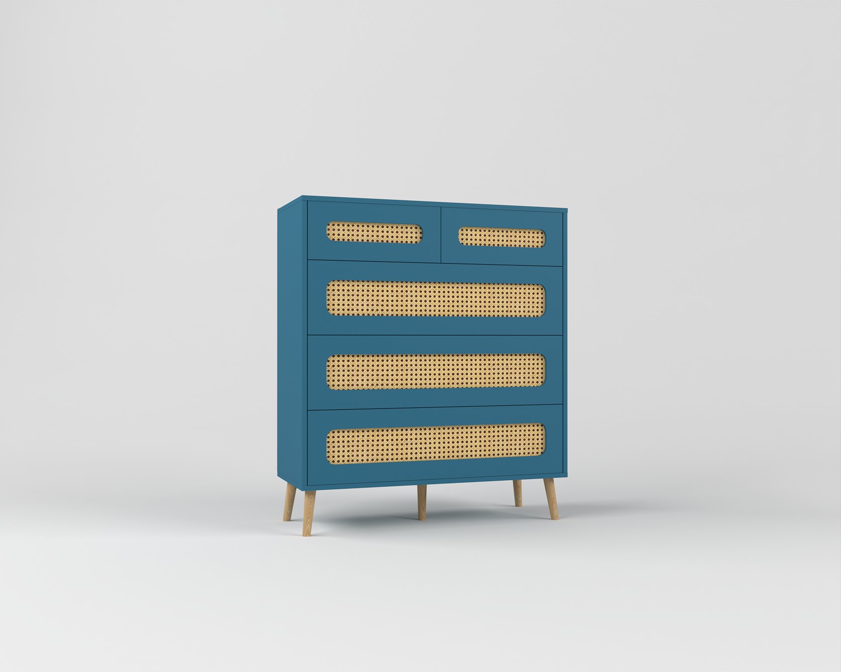 Высокий комод Луми со вставками из искусственного ротанга отлично впишется в интерьер любой комнаты, от гостиной до детской.