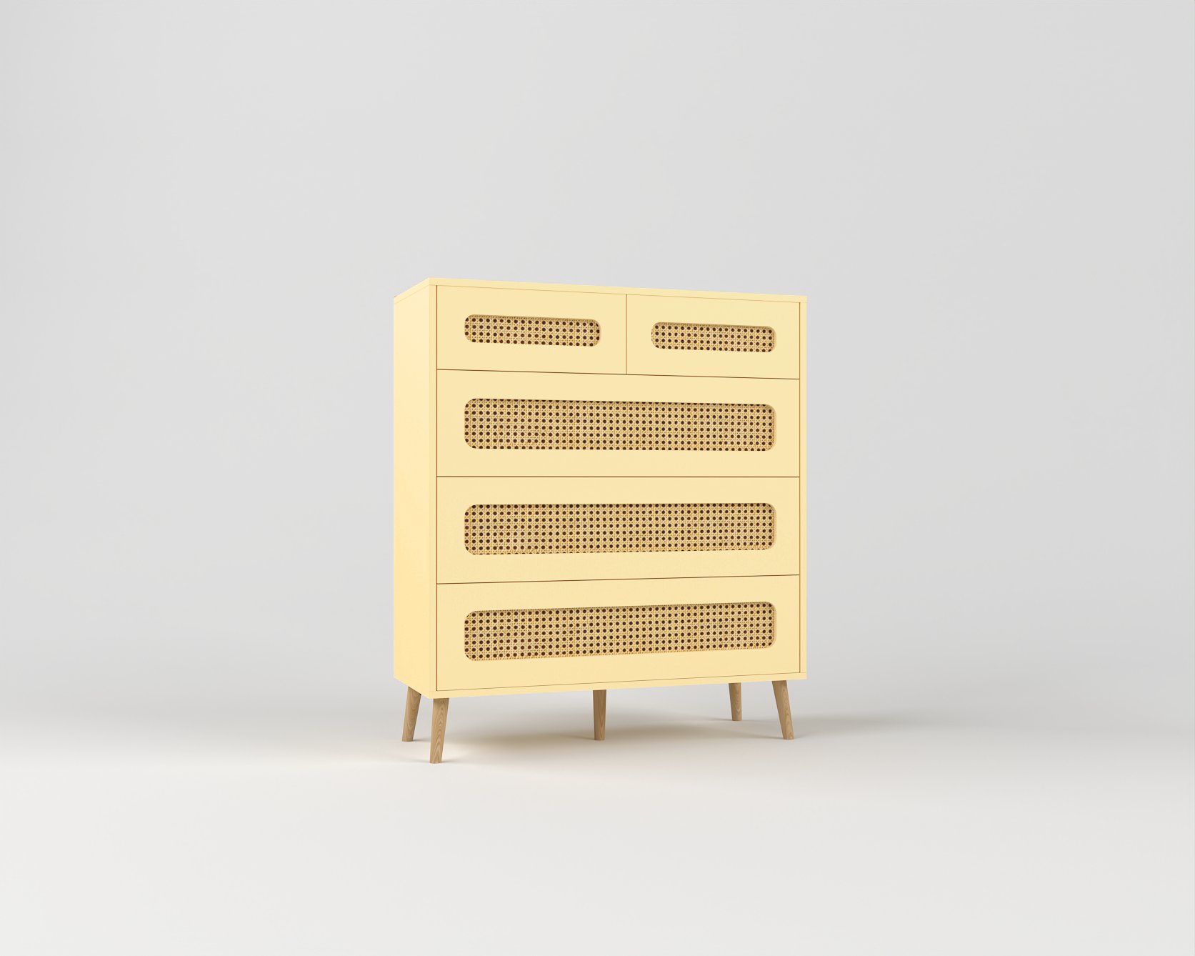 Высокий комод Луми со вставками из искусственного ротанга отлично впишется в интерьер любой комнаты, от гостиной до детской.