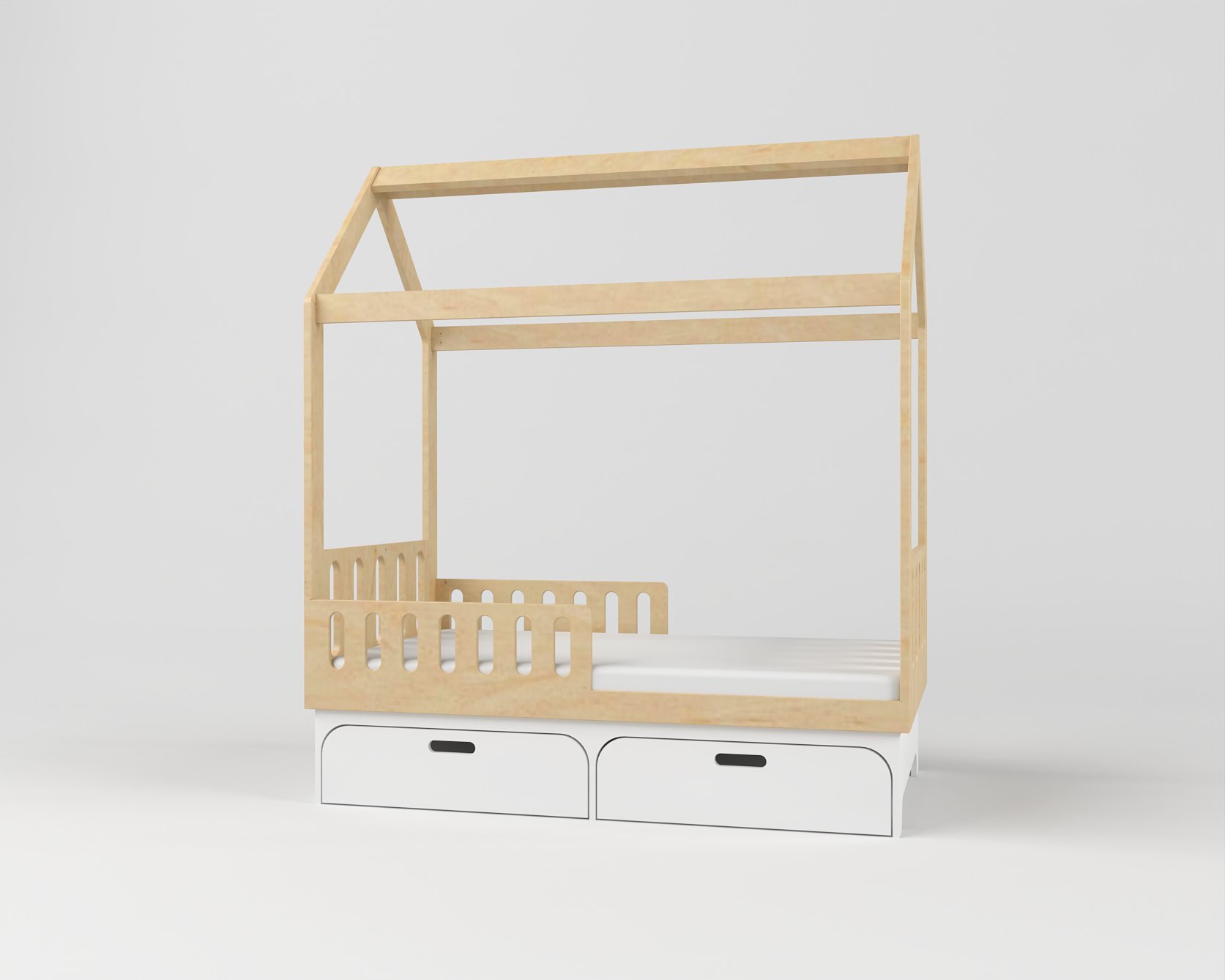 Боковой бортик обеспечивает малышам безопасность и комфорт в ночное время. Кровать изготовлена из очень прочной, устойчивой березовой фанеры и может легко удерживать ребенка, если он повиснет на верхушке или заберется на неё.