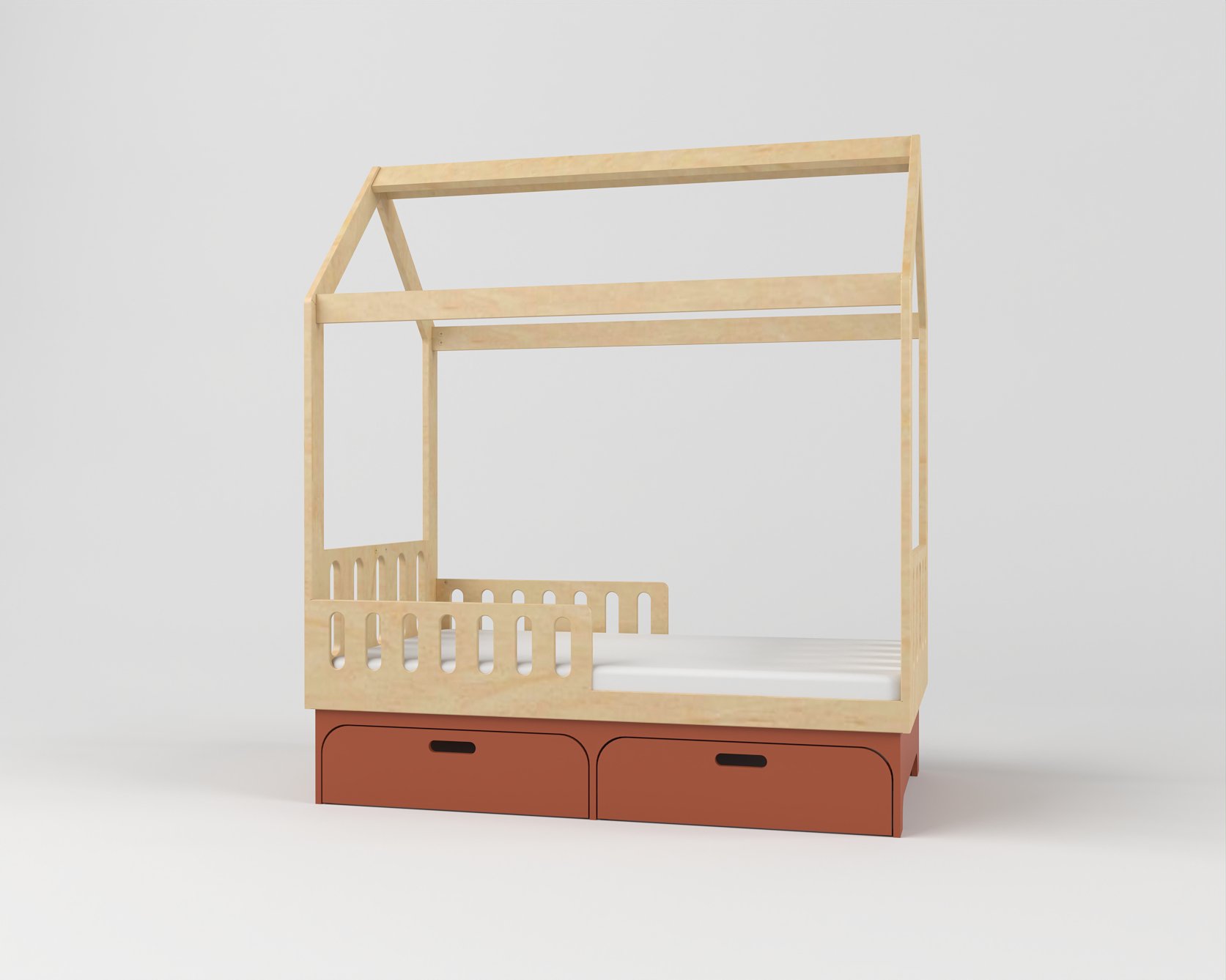 Боковой бортик обеспечивает малышам безопасность и комфорт в ночное время. Кровать изготовлена из очень прочной, устойчивой березовой фанеры и может легко удерживать ребенка, если он повиснет на верхушке или заберется на неё.