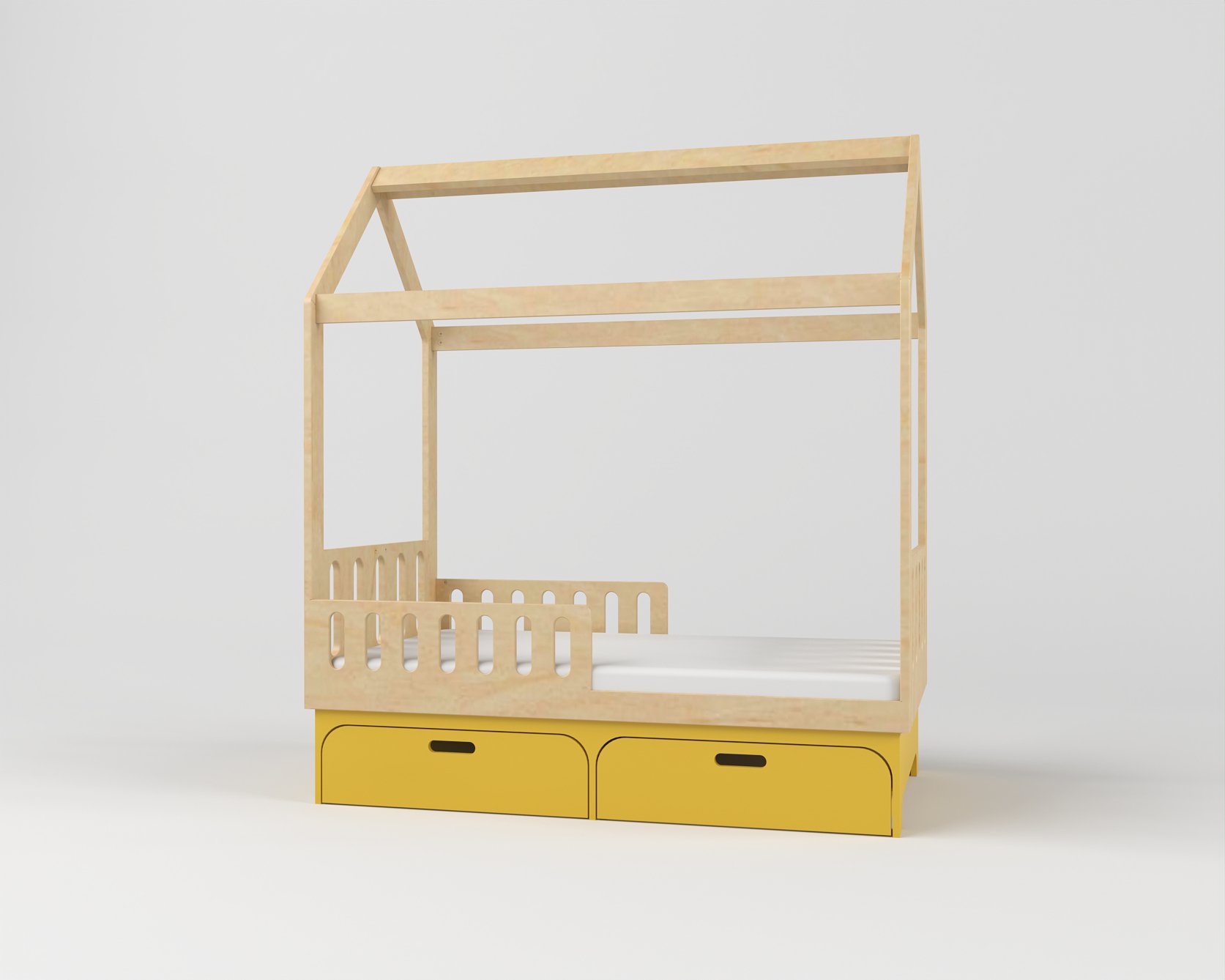 Боковой бортик обеспечивает малышам безопасность и комфорт в ночное время. Кровать изготовлена из очень прочной, устойчивой березовой фанеры и может легко удерживать ребенка, если он повиснет на верхушке или заберется на неё.