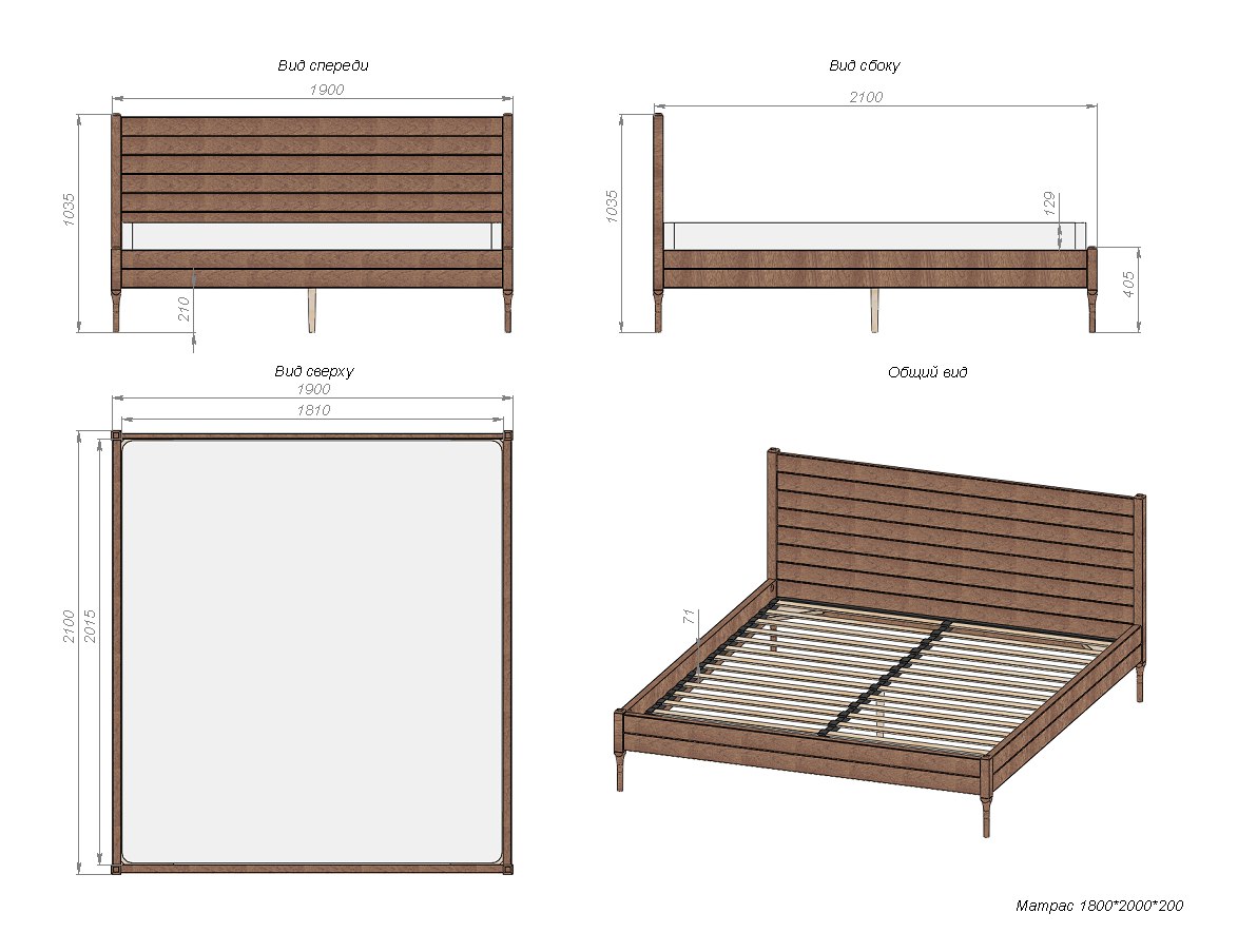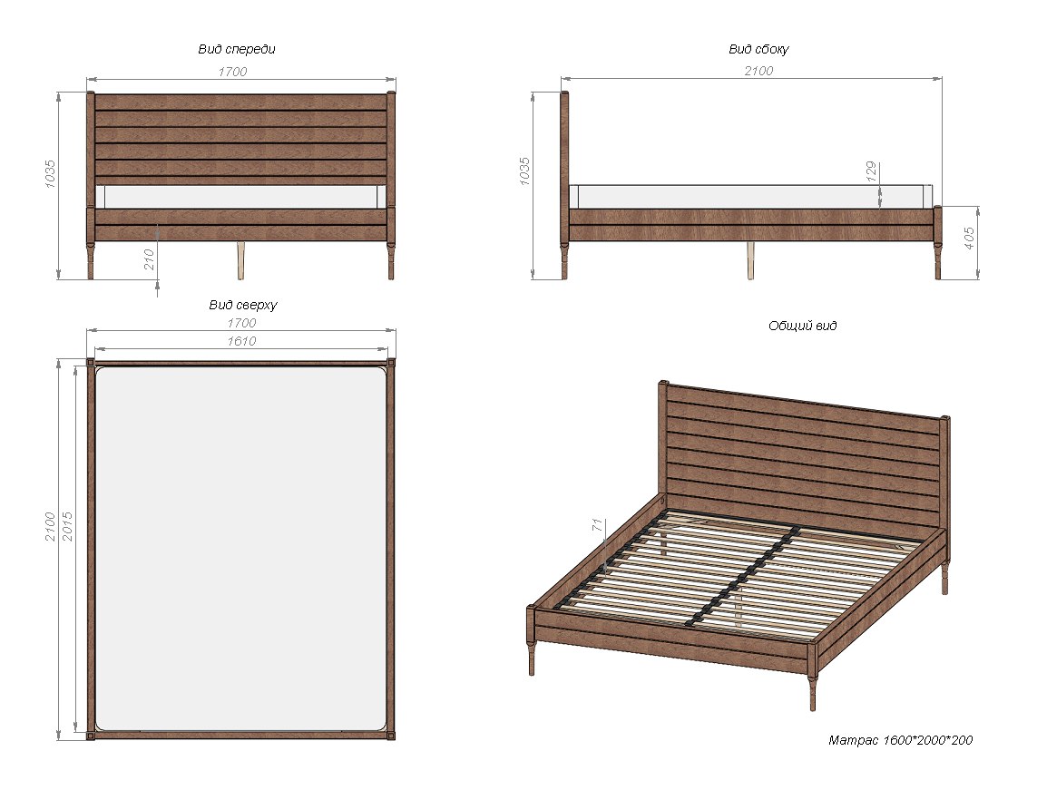 Каркас покрыт морилкой и прозрачным лаком. Насыщенный темный цвет придает кровати изысканности.