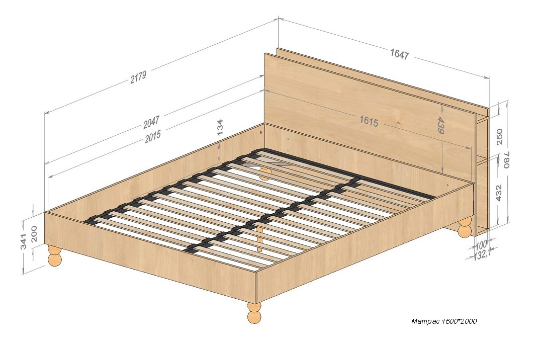Также кровать оснащена реечным дном. Матрас необходимо приобрести в специализированном магазине отдельно.