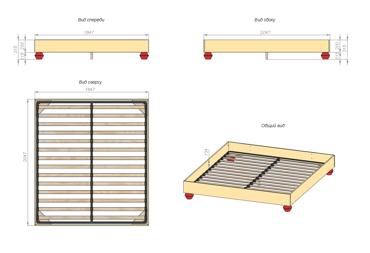 Кровать двуспальная Псковские мотивы без изголовья Желтый: ral 1012