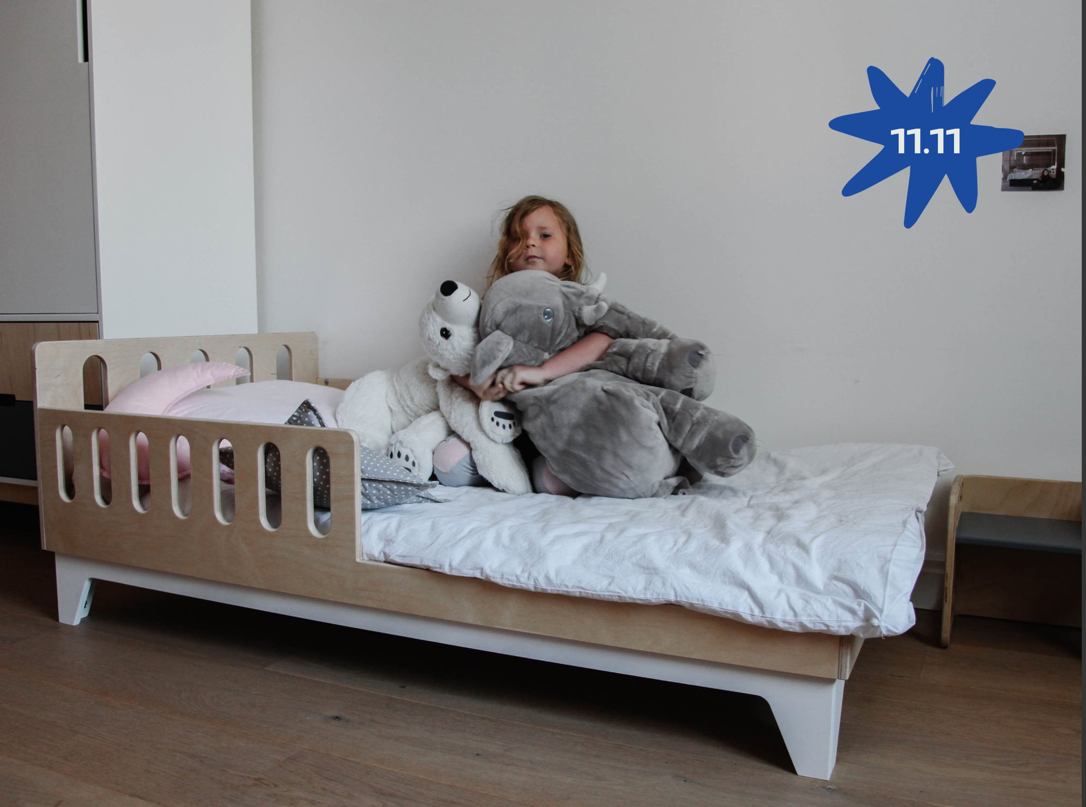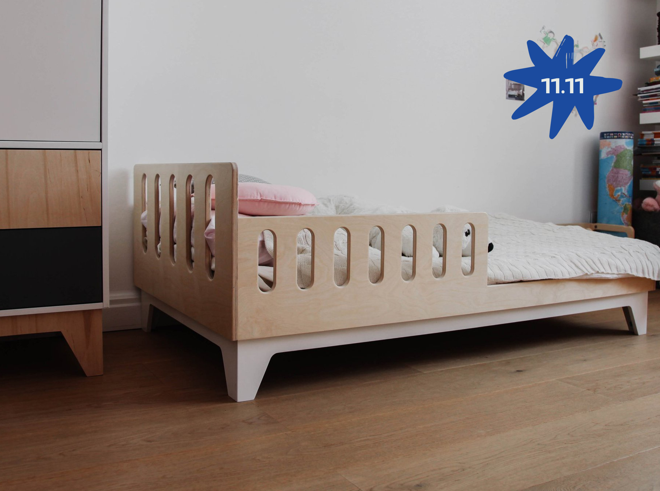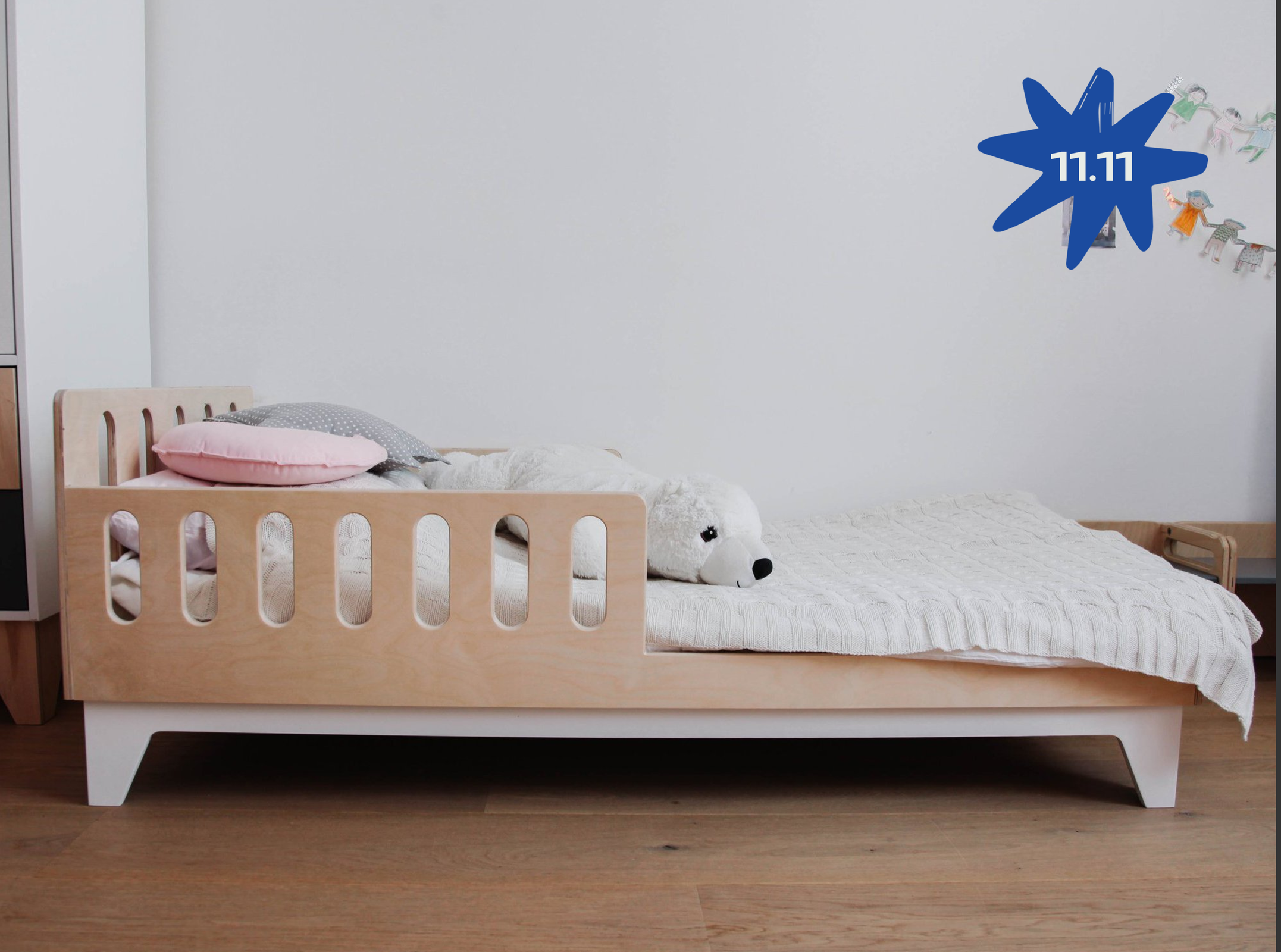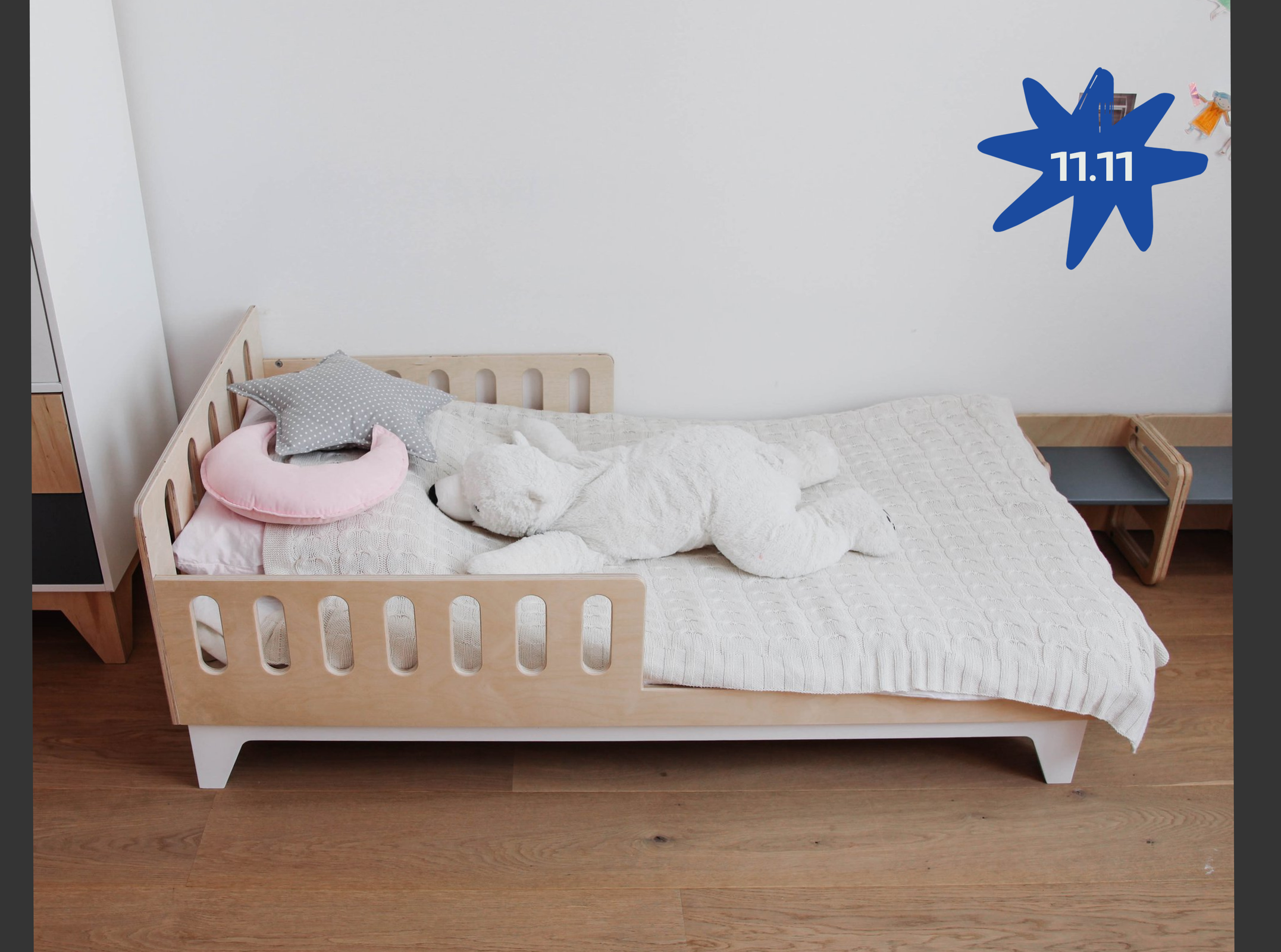 Удобная кровать с бортиками подходит для подросших малышей от двух лет.