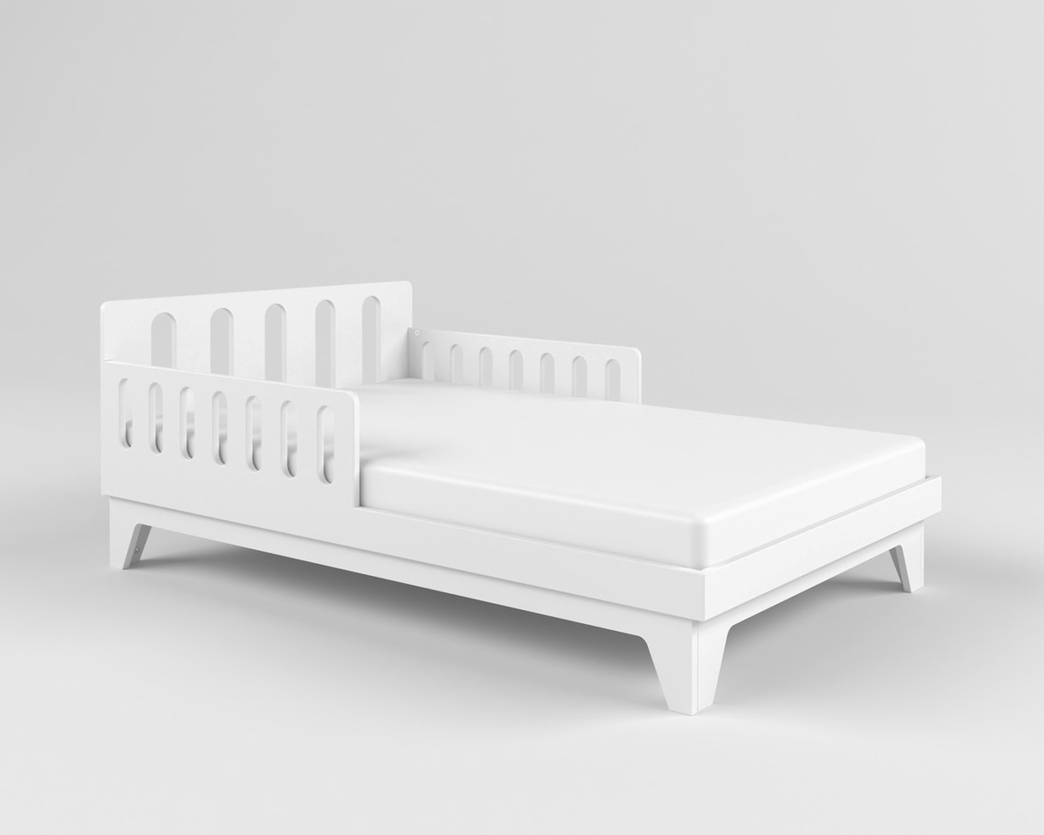 Удобная кровать с бортиками подходит для подросших малышей от двух лет.