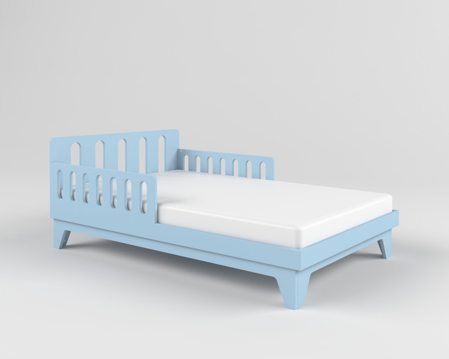 Высота спального места позволяет малышу самостоятельно залезать и слезать с кровати, а бортики с закругленными углами не дадут ему упасть.