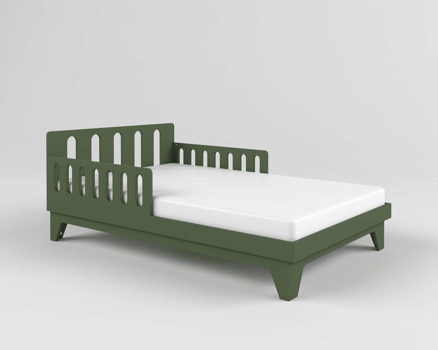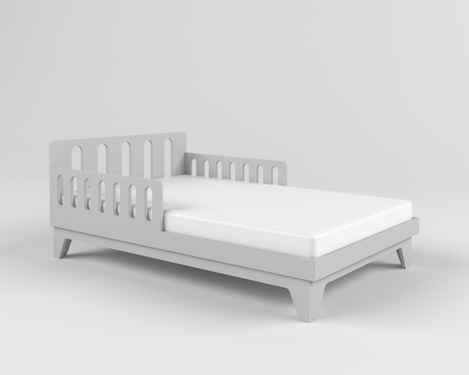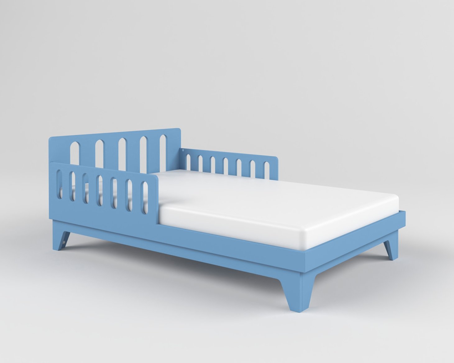 Удобная кровать с бортиками подходит для подросших малышей от двух лет.