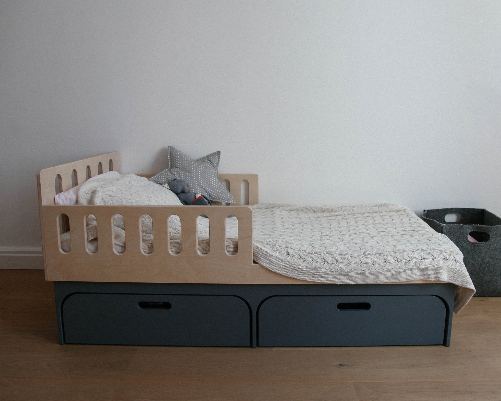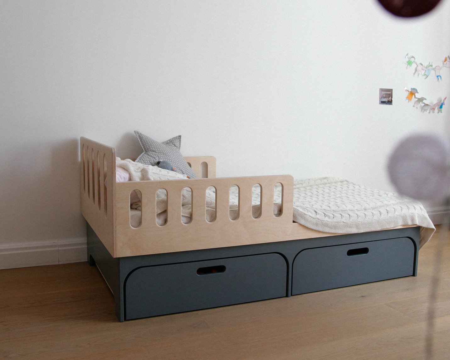 Выдвижные ящики под кроватью отличное решение для хранения, а также экономия пространства в комнате.