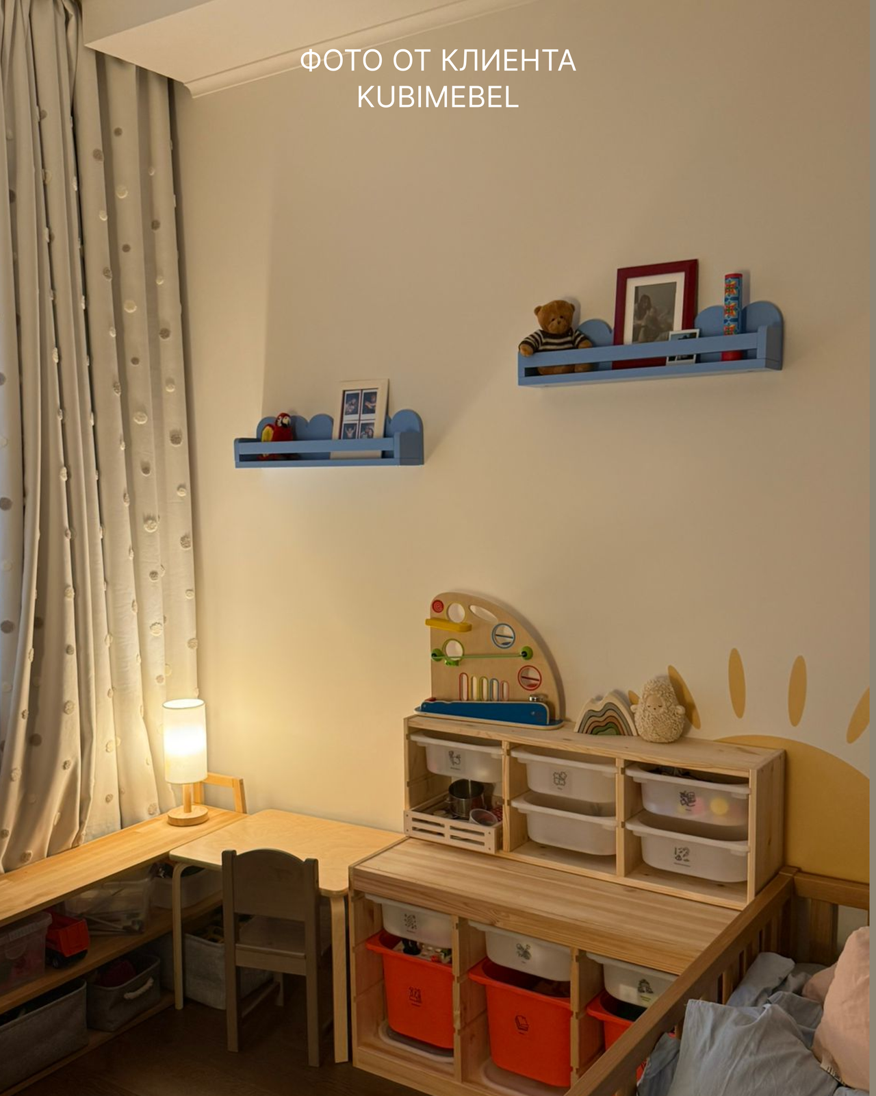 Полка настенная подвесная из серии Фло для хранения книг и разных мелочей. Вы можете расположить её на любом удобном уровне возле кровати или у стола.
