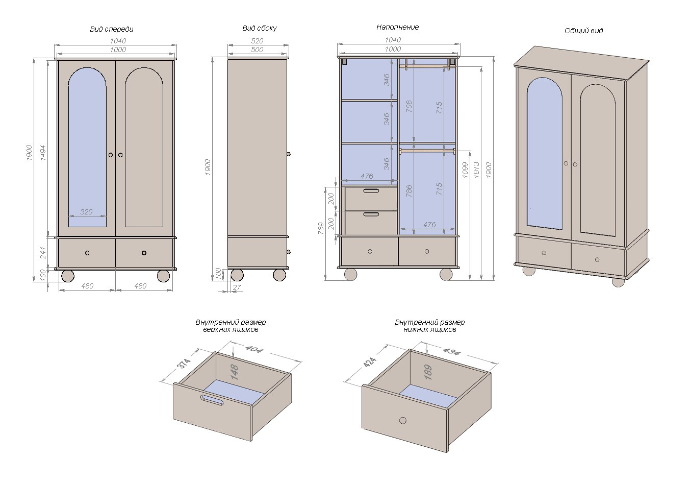 Размеры (ШхГхВ): 1040х520х1900