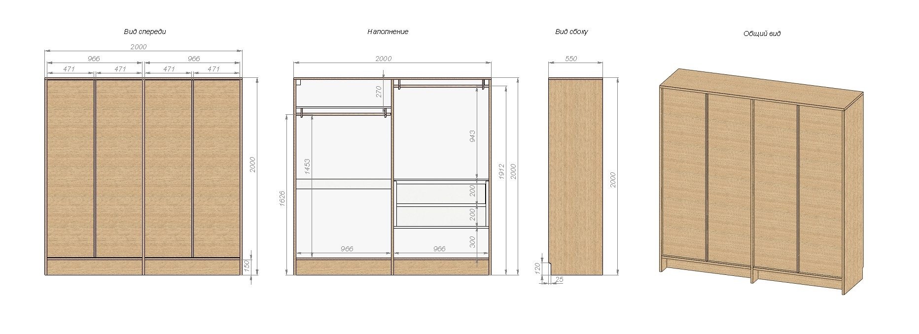 Шкаф для одежды Кабинет четырехстворчатый из шпона дуба