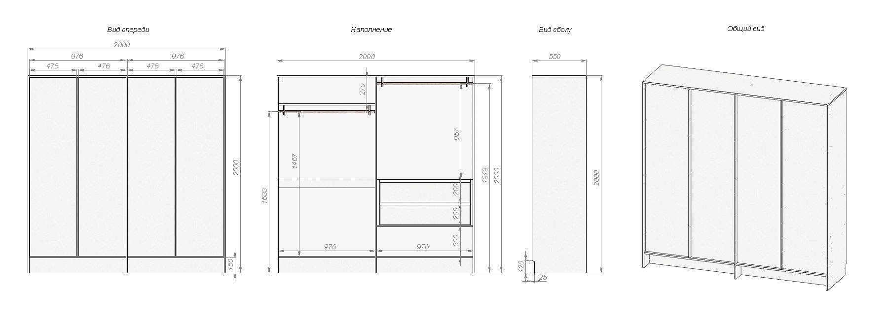 Шкаф для одежды Кабинет четырехстворчатый Просто