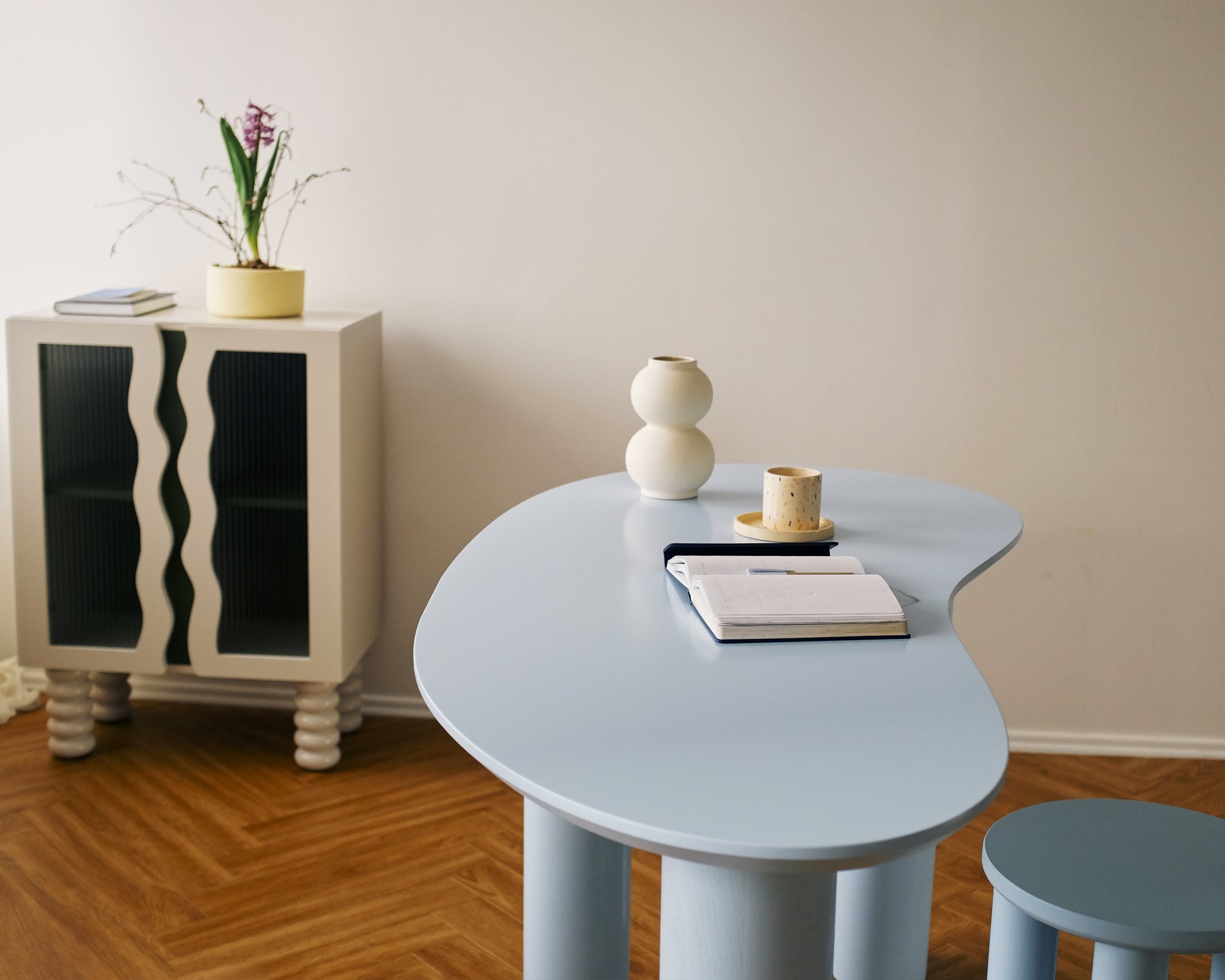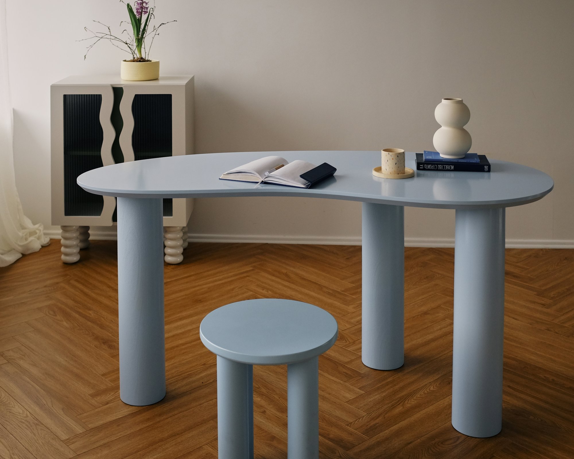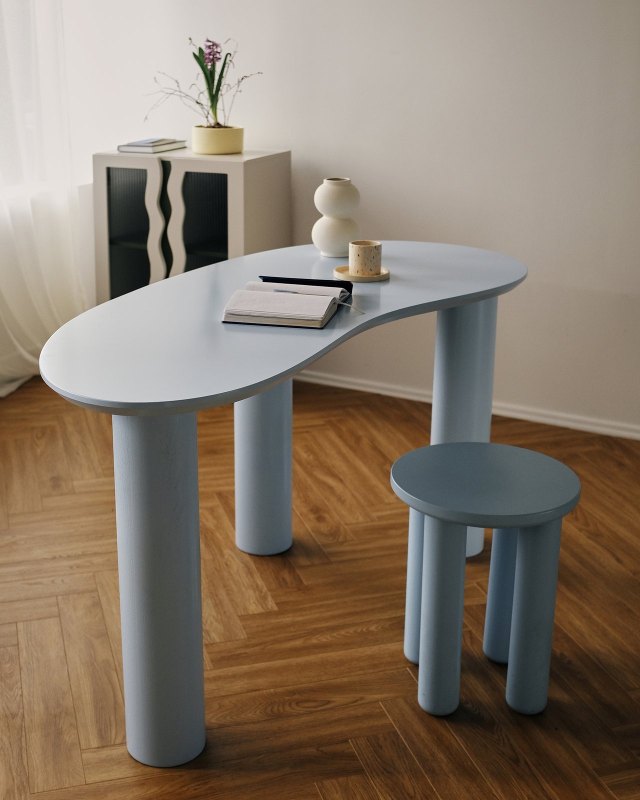 Эргономичная форма делает его особенно удобным в роли рабочего места: выемка помогает разместиться за столом максимально комфортно, сохраняя осанку и рабочее настроение.