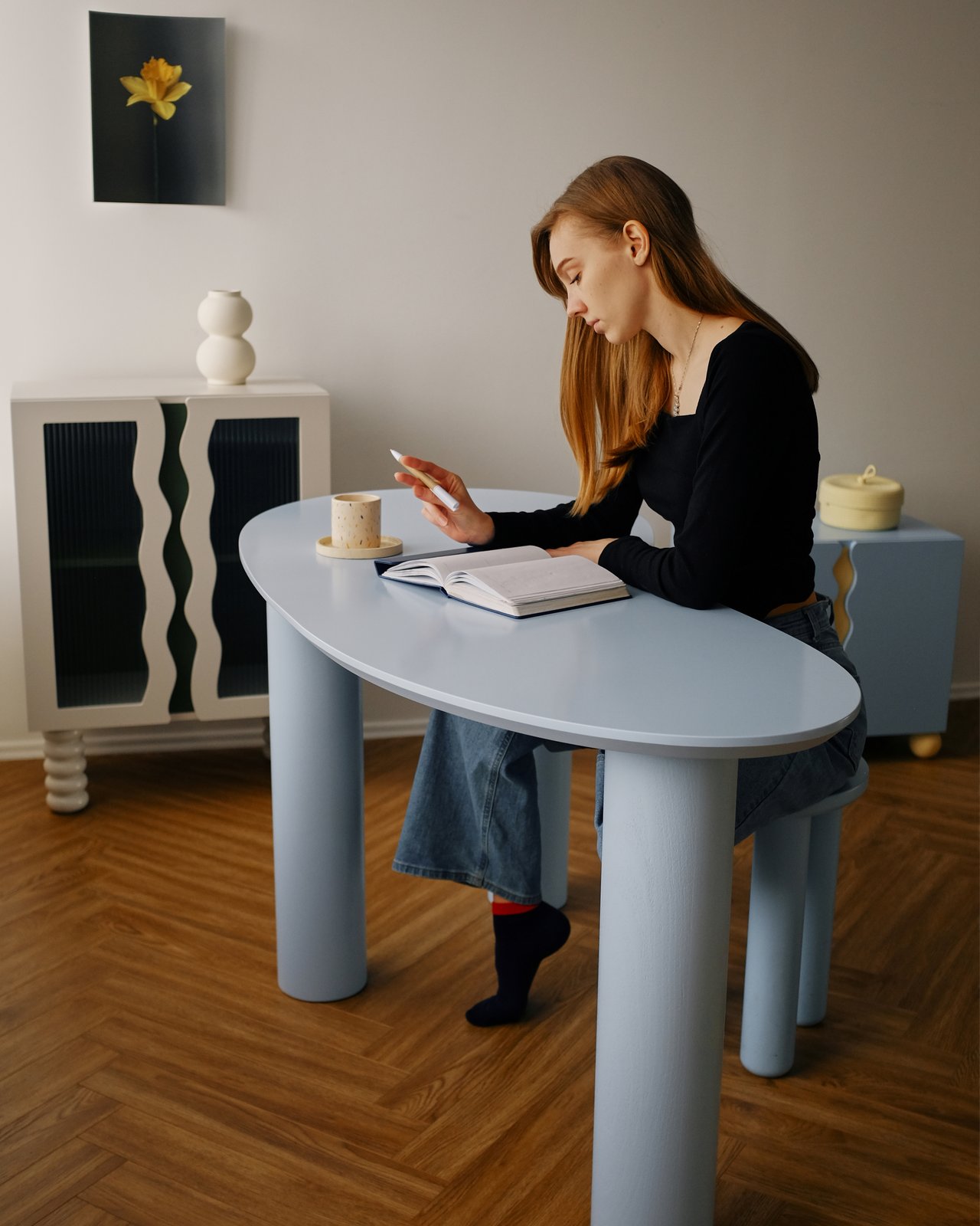 Благодаря характерной выемке в столешнице, он адаптируется под ваш ритм жизни: утро начинается с кофе, день — с продуктивной работы за ноутбуком, вечер — с уютного ужина.
