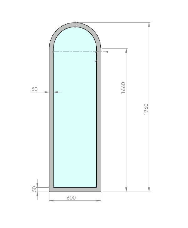 Лаконичное зеркало в форме арки. За счет своей высоты дает отражение в полный рост.