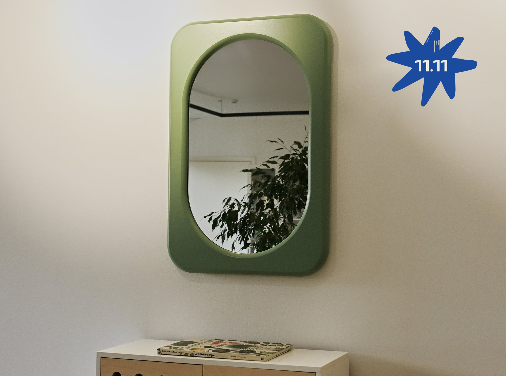 Зеркало «Объемное» привлекает внимание своей выразительной формой и глубиной. Толстая рама из МДФ с мягкими прямоугольными очертаниями создаёт эффект объёма, словно зеркало утоплено внутрь конструкции. Внутреннее овальное зеркало добавляет утонченности и делает композицию визуально легче, несмотря на массивность рамы.
