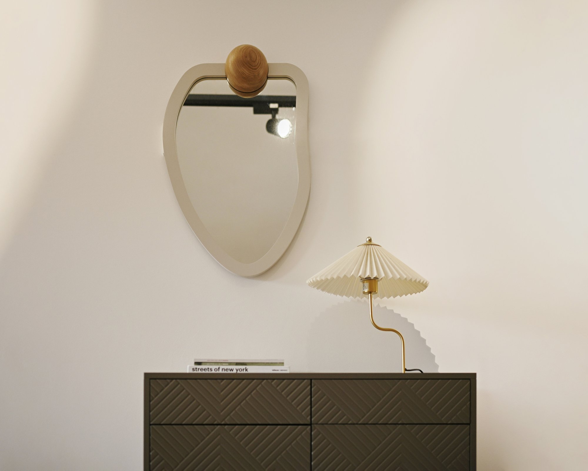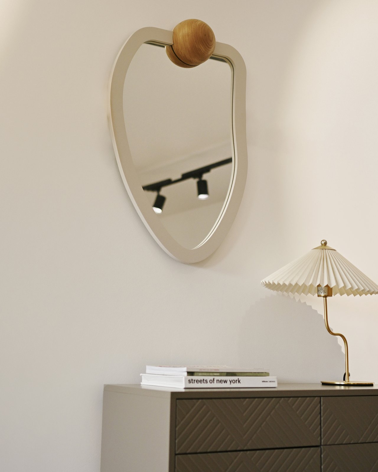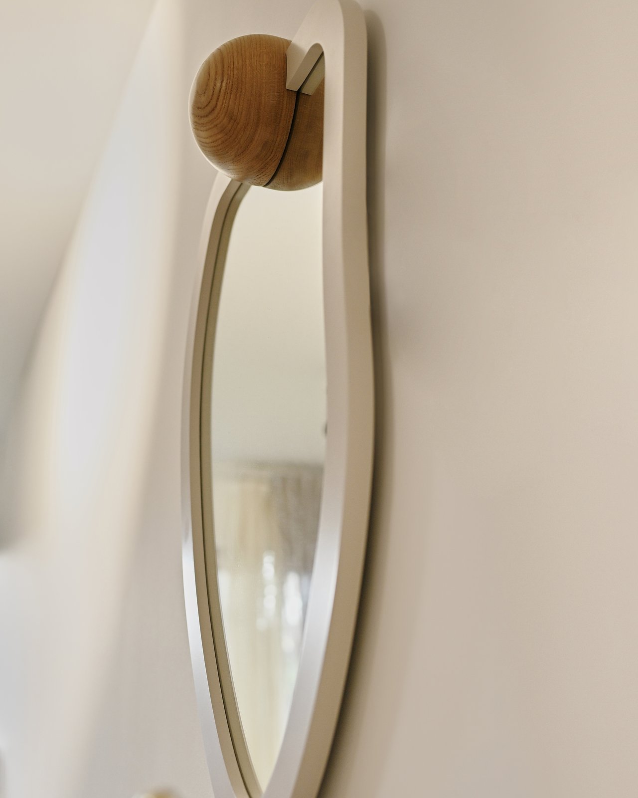 Зеркало «Шар №3» с обтекаемой рамой из МДФ дополнено выразительным акцентом — шаром из массива дуба. Эта деталь придаёт изделию характер и делает его центром внимания в интерьере. Зеркало можно адаптировать под ваше пространство, выбрав любой цвет оформления рамы.