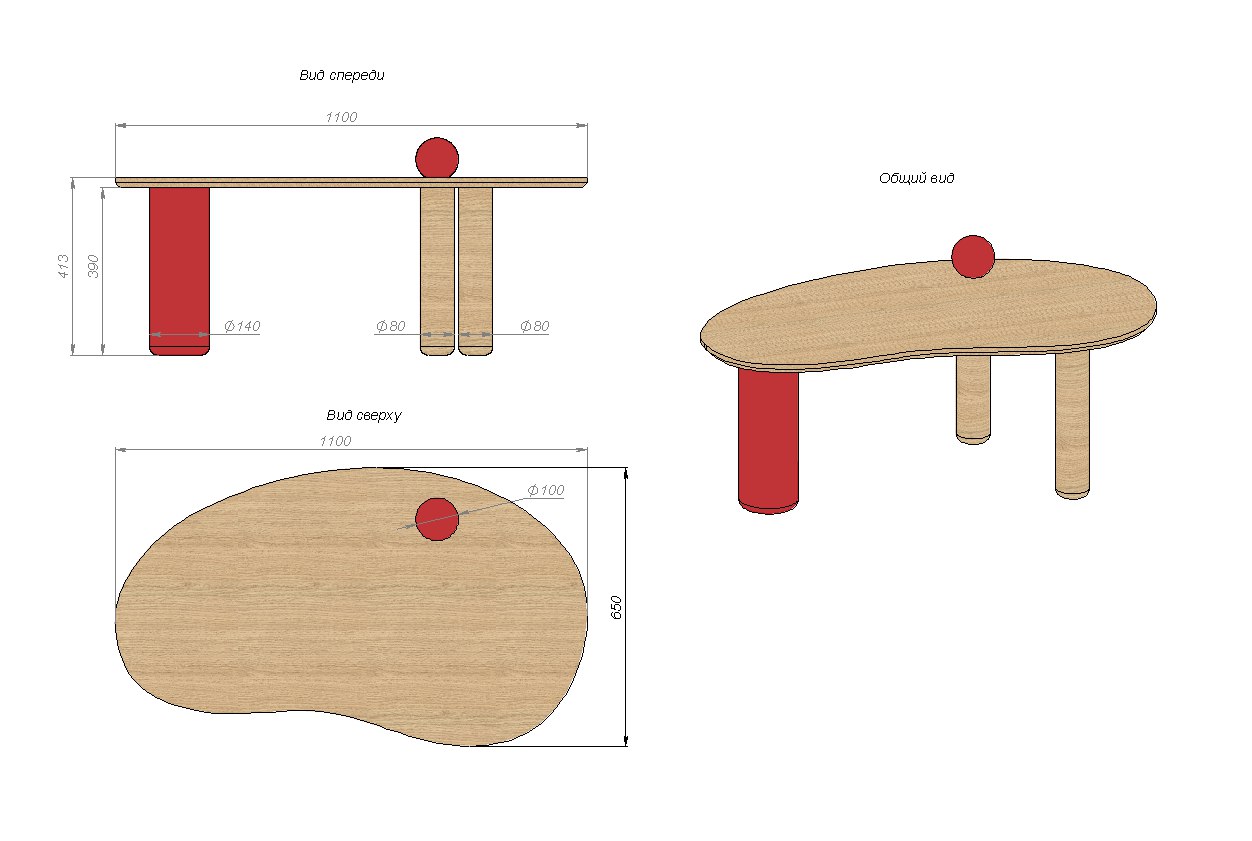Асимметричная столешница задаёт движение и делает силуэт живым. Контрастные опоры добавляют ритм и устойчивость, собирая композицию в цельный образ.